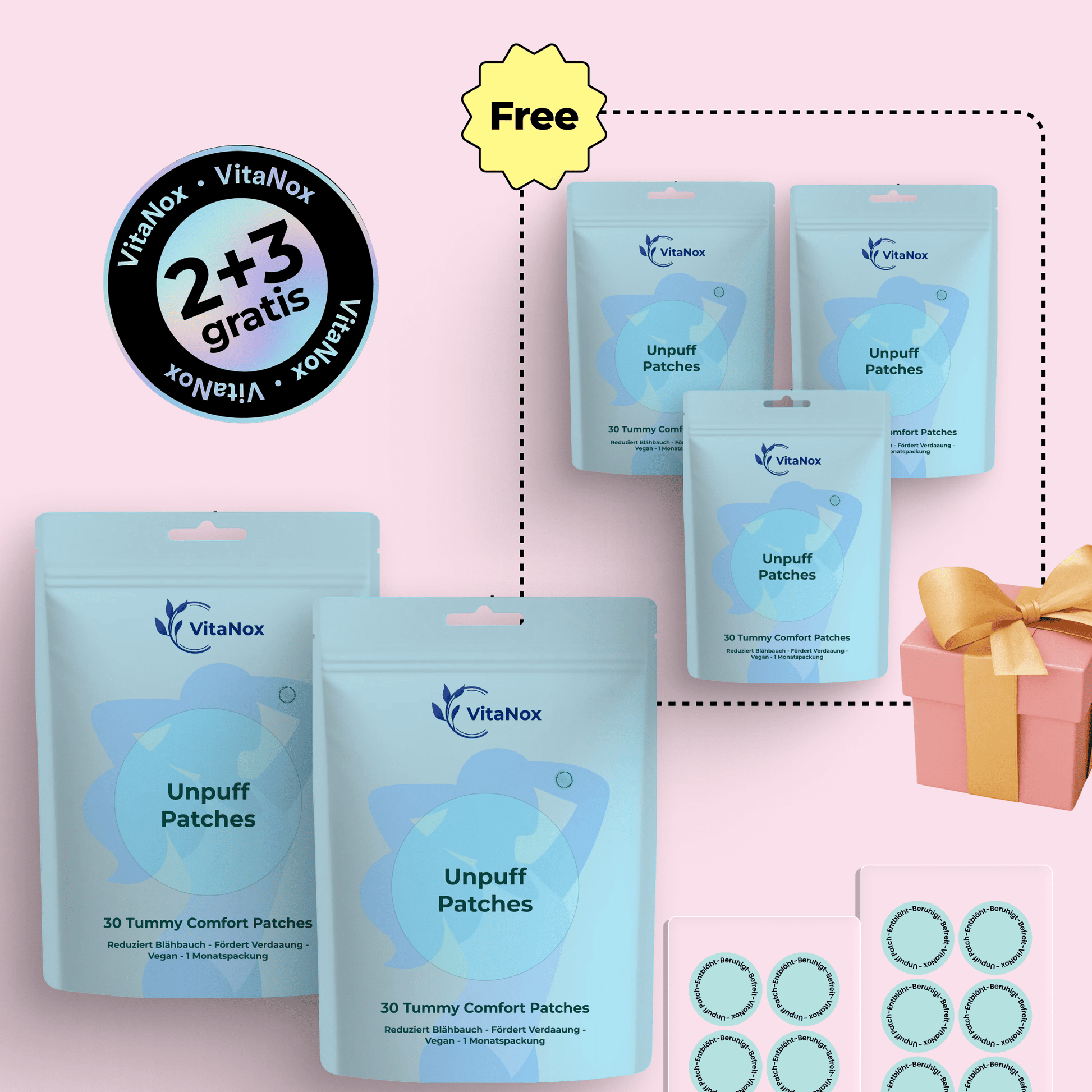 Unpuff Patches geben pflanzliche Inhaltsstoffe schrittweise über deine Haut ab, um sanft dein Verdauungswohlbefinden und den Flüssigkeitshaushalt zu unterstützen. Mit Inhaltsstoffen wie Ingwer, Fenchel, Kurkuma, Artischocke und Löwenzahn – traditionell in der pflanzlichen Heilkunde verwendet – unterstützt der Patch die natürlichen Rhythmen deines Körpers, ohne auf Pillen oder schnell wirkende Mittel angewiesen zu sein.